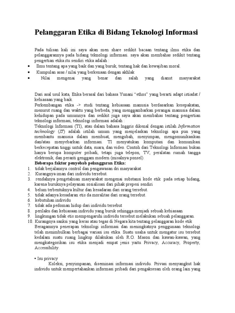 Sebagai ilustrasi, jika anda mengetahui bahwa di sebuah desa terdapat. Pelanggaran etika yang pertama adalah menyebarkan . Carilah contoh pelanggaran etiket di sebuah forum. Carilah contoh pelanggaran etiket di sebuah forum. Menyela pembicaraan moderator atau orang yang sedang menjelaskan